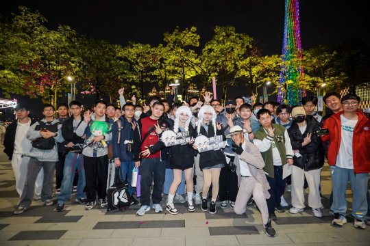 这一系列极具吸引力的设计,迅速点燃了在场玩家的参与热情。短短两小时内,数百名玩家与粉丝汇聚于海心亭,在珠江璀璨的夜景映衬下,井然有序的排队人潮与兴奋的交谈声,宛如游戏中的星际社交港口跃入现实。