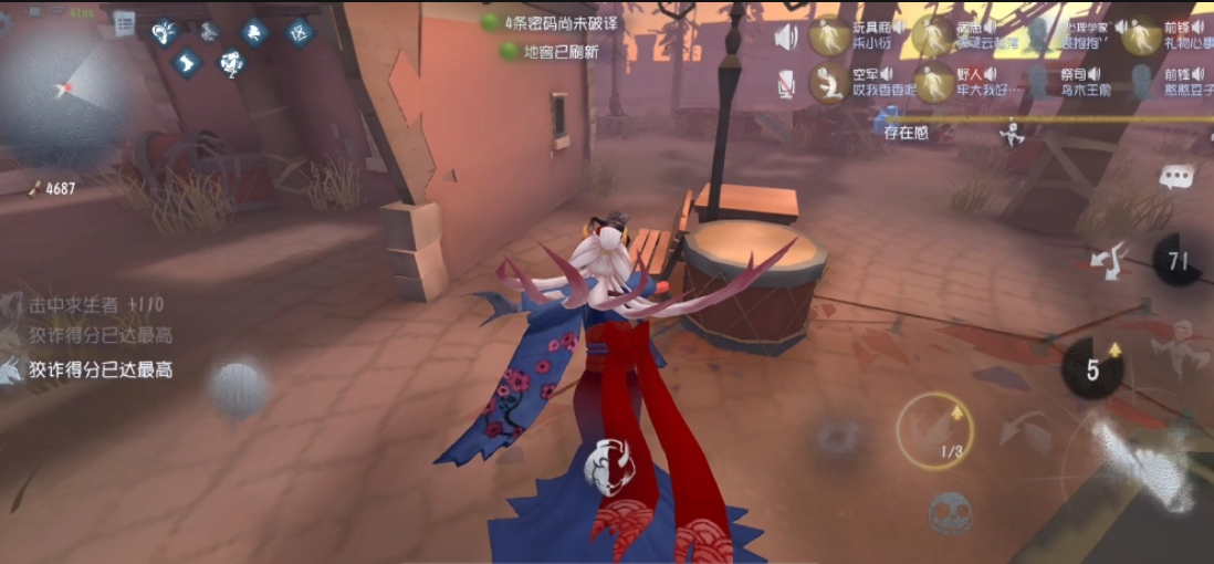 联合狩猎模式需要修七台机,修开三台会刷出地窖,修机和溜鬼都能刷分,每个地图在固定敌方都会有电话亭,使用电话亭能用积分购买里面的道具,还有一些药剂也很实用,最实用的是加速剂,使用之后能跑得很快。该模式中可以买酒喝酒回血,不过空军、盲女和拉拉队员都无法买酒,就算队友帮买了能在地上看见但道具栏不会显示。