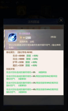 4.法宝聚灵:激活全局被动法则。体系:分为天、地、玄、黄四大类,每类包含三条独立的聚灵法则。效果:激活每条聚灵,均可解锁一个强大的专属被动技能,且效果对全体上阵神将生效,是构建队伍底层被动光环的核心。