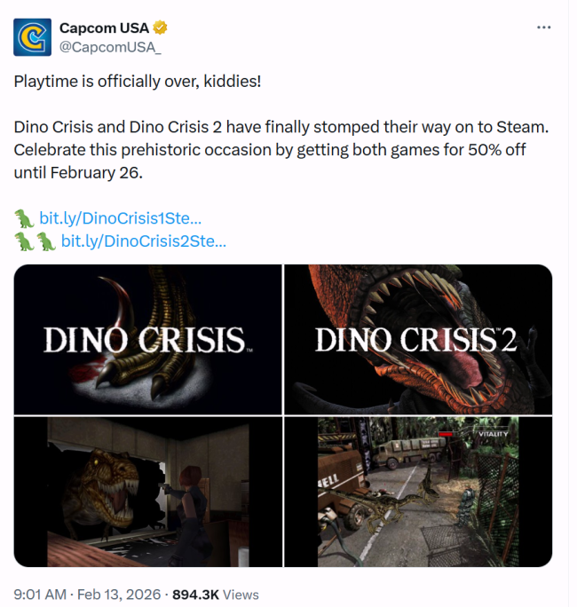 《恐龙危机》是由卡普空旗下《生化危机》开发团队打造的生存恐怖动作冒险游戏。两部作品分别于1999年与2000年在初代PlayStation平台首发,如今终于登陆Steam。需要说明的是,本次上线的并非重制版本,而是针对现代系统进行优化的移植版。
