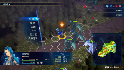战斗在六角形的模块中以回合制的形式展开。是击破敌方将领使其撤退,还是逐个击破敌方部队都由玩家自己来决定。
