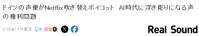 世界流媒体巨头Netflix近期悄悄更新了配音参演合约,规定参与Netflix旗下作品的本地化配音工作的演员声音默认被允许参与AI训练使用,引发争议,德国的配音演员多数自发共同抵制参与Netflix作品。