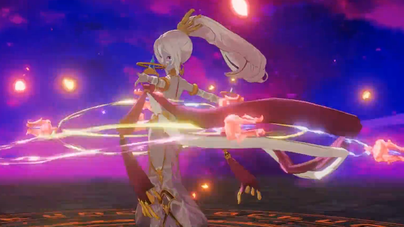 首先为大家介绍的第一个技能是天堂之舞,这个技能给艾鲁莎带来的是直接伤害,会对最接近她的一位目标造成攻击力上面280%的伤害之后,可以让这个目标处于每2秒受到60%的触电效果,而且此时触发的状态除了这个触电之外还有兴致勃勃,兴致勃勃这个状态一旦产生,就可以造成相当总伤害量的额外百分比加成,而且可以跟欧妮丝这个角色的高频能力进行叠加,所以后期如果要为艾鲁莎进行这种搭配的话,其实她是非常适合跟欧妮丝放在一起用的。