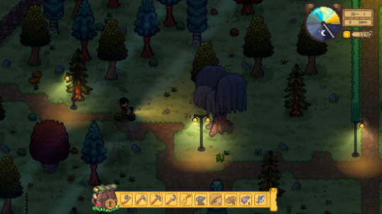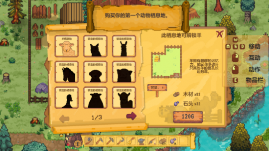 游戏整体是那种很温暖的像素风,音乐也轻柔。每天都会有顾客,陆陆续续把自家的各种奇奇怪怪的宠物送过来,让你帮着带几天。这时候你就得开始忙活了:登记、安置、给这帮小动物搭建栖息地、准备口粮和水,还得时不时清扫粪便。在栖息地旁边,你还可以顺便砍砍树、种种菜、除除草。