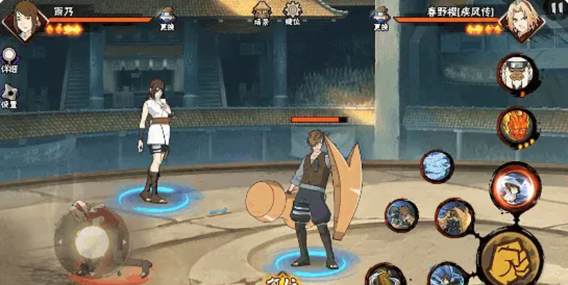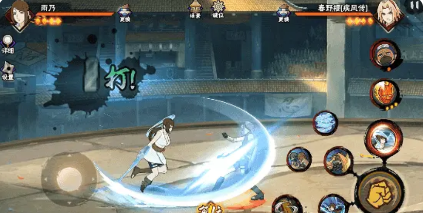奥义技“砂阵连击”展现砂隐特色战术配合:瞬间同步召唤志志雄与光司共同入场,志志雄施加隐身效果,使雨乃与光司进入不可见状态;随后三人协同前突,对敌方目标发起多段连续打击;终结阶段雨乃率先解除隐身,以水螳螂完成强力斩击,实现高爆发收尾。
