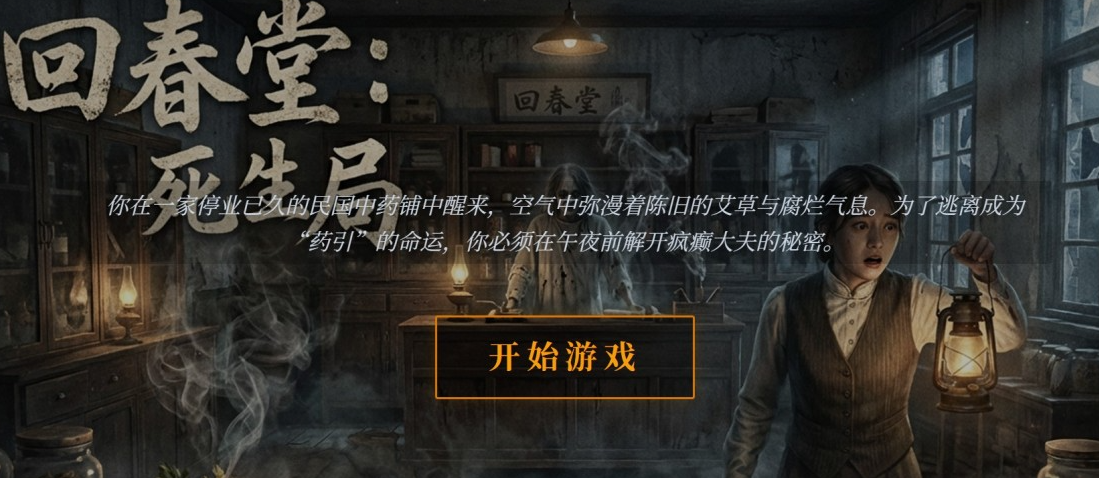 我们所扮演的主角在某一天莫名其妙的晕了过去,在醒来后发现自己竟然是在一个停业已久的中药铺之中醒来了,空气之中有着很多陈腐的味道,这里面还夹杂着艾草的味道。