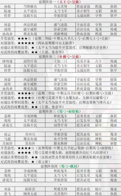 它们也是小编卡卡非常的推荐玩家们去选择的队伍。这个阵容的主要实力是体现在推图方面了它们有着很强的稳定性,可以对敌人造成大量的伤害,就算是挂机也是可以起到很多的作用的。因此还是非常的推荐玩家们去进行选择的。在这个搭配之中,大家只需要着重的培养典韦就行了,他是我们的主要输出。其余的角色拉到平均线就行了,主要需要的还是它们的技能,死不死的无所谓。