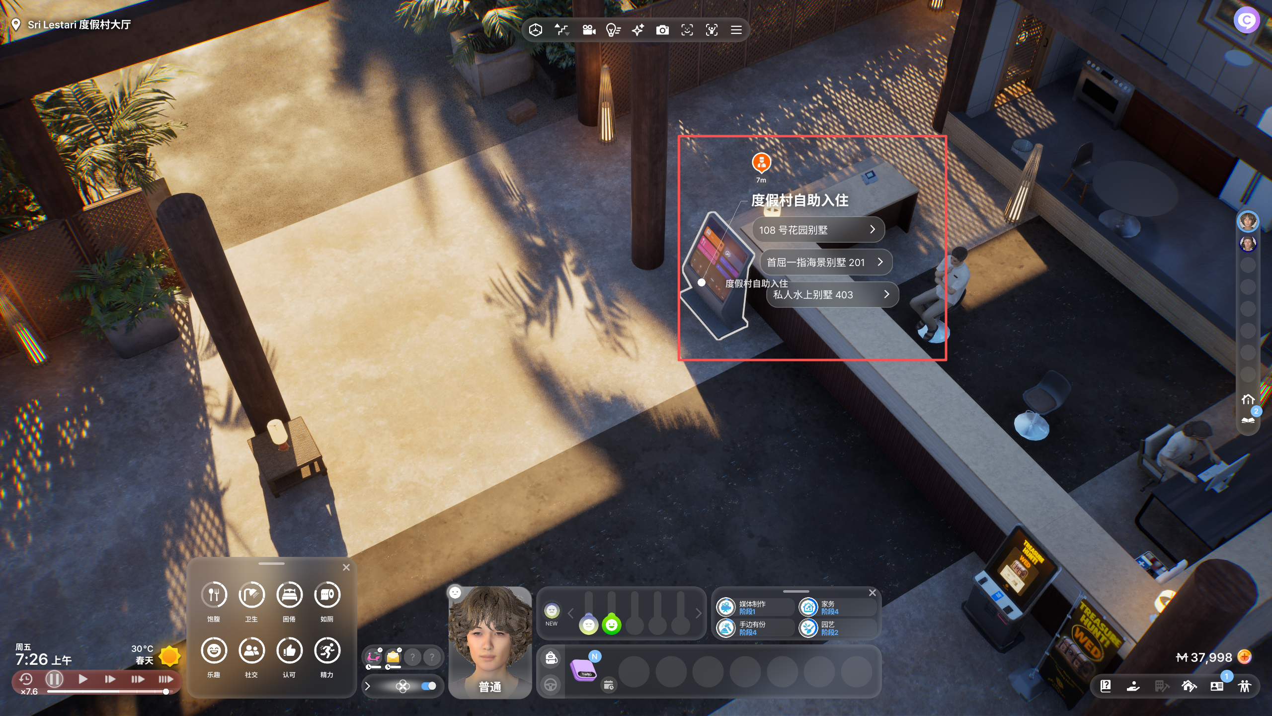 玩家首先需要前往海岛左侧的度假村,在大堂内点击自动入住屏幕完成登记,而不是与吧台服务员对话。成功入住后,会收到系统短信提示,并可通过点击角色前往专属住宿区域。完成入住后,度假村的各类娱乐设施也将向玩家开放。如果想要体验水疗项目,还需额外购买水疗券方可使用相关服务。