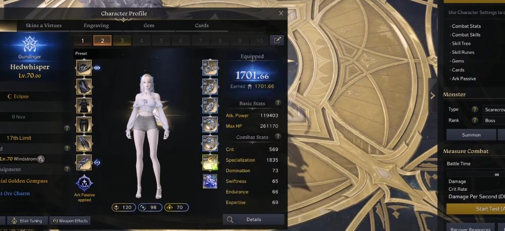 最为常见且基础的53铭刻,是五个铭刻全部都升到三级,其中尖刺重锤与巫术人偶可互相更换。在属性配比方面是给项链选择专长与迅捷,其中一个戒指选择迅捷,其他的饰品全部都选择专长,而套装则是选择救赎或者噩梦。该套配装对操作技巧的要求较低,不需要特别高的装备打造,只需要确保肾上腺素Buff不掉,输出前给boss挂上减爆抗的Buff即可。