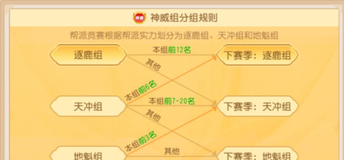 新赛季帮战将划分为逐鹿、天冲、地魁三个组别,形成“金字塔式”竞赛结构: