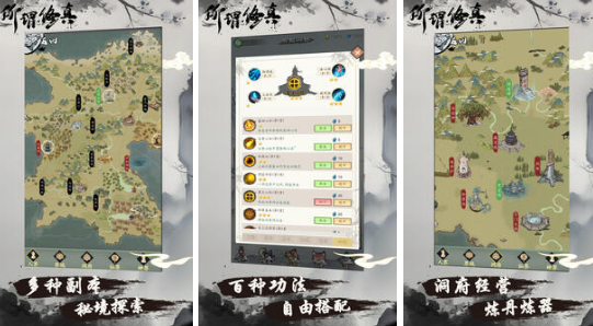 以宋代院体水墨为美术基调,山峦氤氲、云气流转、剑光如篆,整体视觉高度契合古典修真意境。主线围绕苍生劫难展开,玩家需通过济世行善积累功德,解锁更高阶修行权限。核心玩法聚焦“开箱炼器”系统,所有宝箱开启行为完全免费,无抽卡概率限制,强调过程公平性与策略规划性。