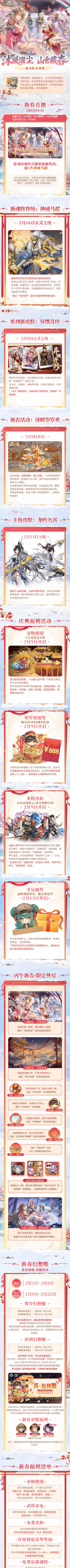 2月16日开启,神威马超正式登场,同时还有新玩法,比如“风云汤阁”、“灯轮宝市”都会陆续上线,配合超级招财、玉骢迎春、每日密令、压岁钱灯多种红包活动,可以得到很多元宝以及核心养成资源。还有禧乐锦鲤、春礼团购等限时折扣内容,也是为大家补齐阵容、加速养成提供了机会。