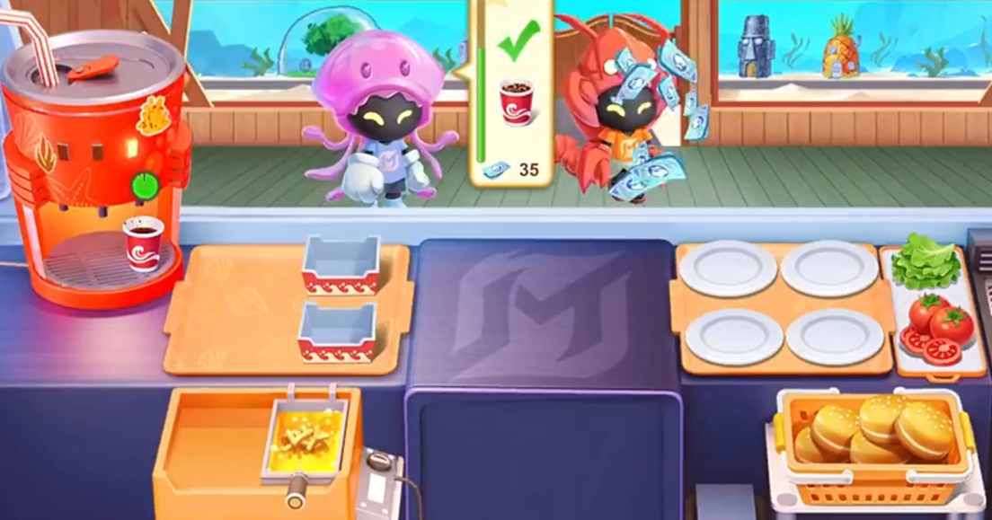 全新玩法“海底餐厅”以蟹堡王为原型构建,玩家需通过完成日常委托获取游玩卷,消耗游玩卷启动订单制作流程。操作逻辑清晰直观:先将汉堡肉煎至金黄,再依次叠加西红柿、生菜与汉堡胚,最终组合成标志性蟹黄堡。整个过程节奏明快,兼顾策略性与休闲感。