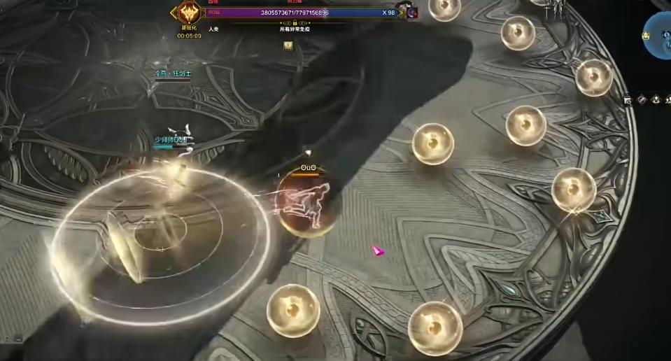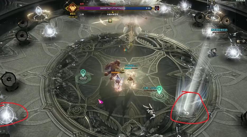 还需要通过队友的标记来找到与标记重合的boss真身并打掉,需要注意的是,只有走到分身的身前才会触发瘫痪条。而分身无论真假都会出现瘫痪条,所以无法通过瘫痪条去辨别。等boss返回中场后,就说明机制开始了,玩家也需要回到12点集合。进入到里世界后,在11点钟方向就可以看到第一个分身,此时可以明显的看见,11点的标记和分身是明显重合了,那就说明这个分身是真的。