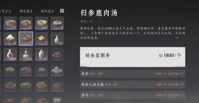 没时间采集的玩家就直接去商店购买需要的材料,买完材料还有多出来的体力就去不肝商店直接兑换成宝钱,或者去手动采集一些镜菱花制作何人饮卖掉,这样每周也能获得几十万的宝钱。虽然会损失一点通宝,但总体还是赚的,如果有时间的话最好还是去采集一下材料,每天只需要上线采集几分钟就能让宝钱的收益最大化。烹饪的话有一点要注意,神仙酿鱼销金窟是不收的,制作之前最好打开销金窟看一下。
