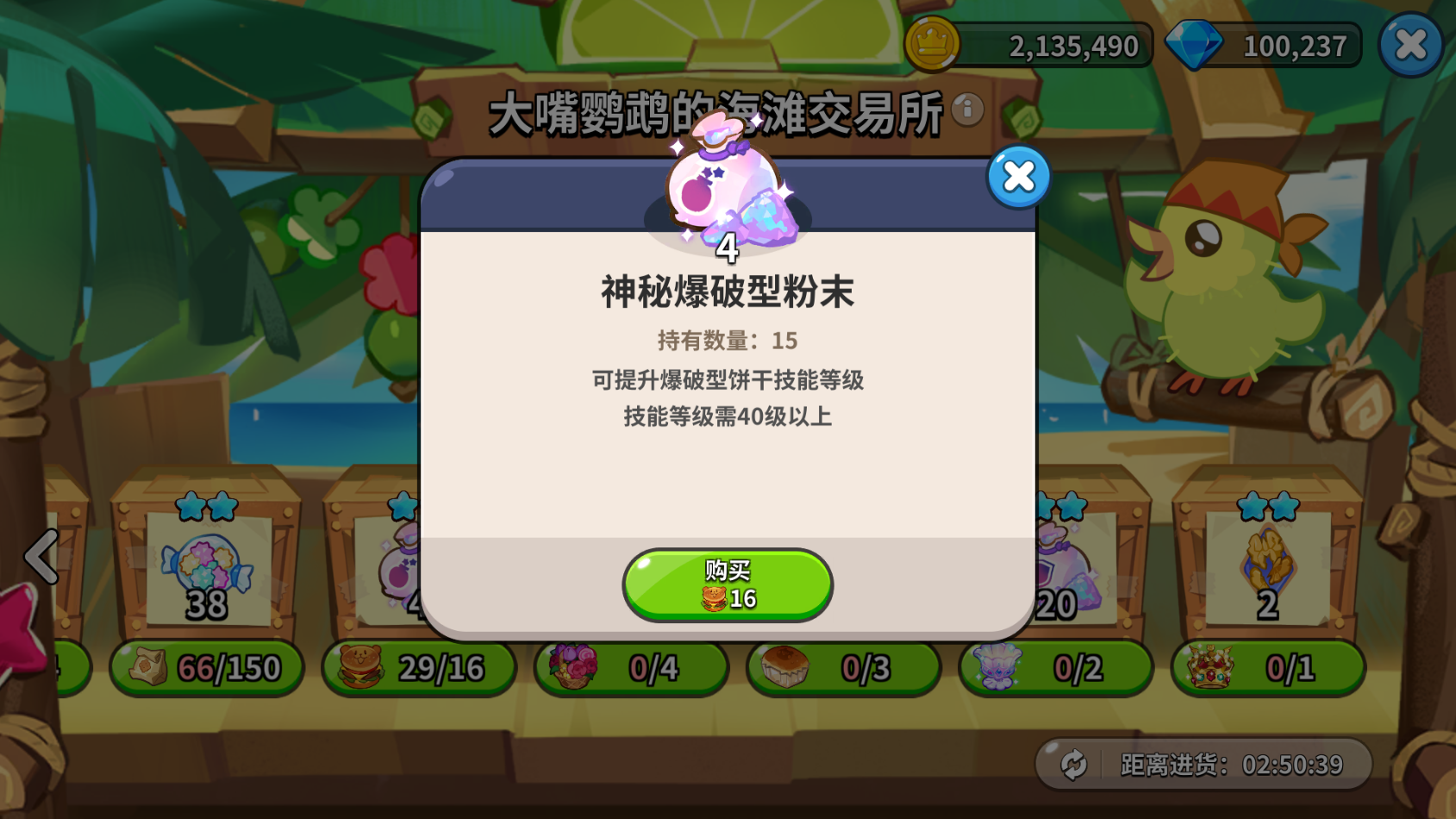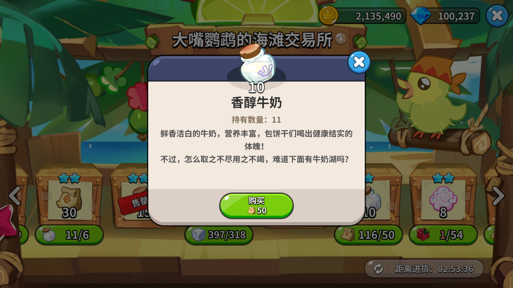 冲呀!饼干人:王国《冲呀!饼干人:王国》大嘴鹦鹉交易所物资置换推荐如下: