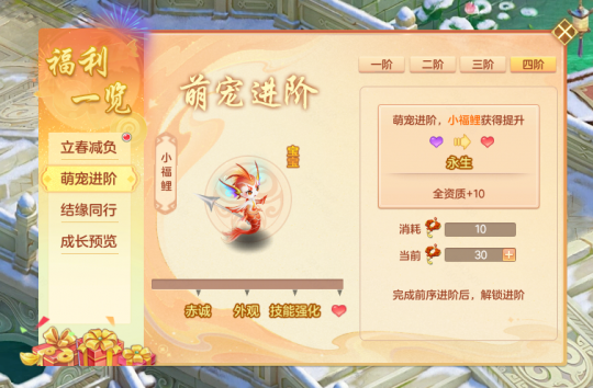 《幻唐志》萌宠特殊技能巨浪冲击”同时,少侠参与萌宠进修活动,不仅可以将萌宠小福鲤”进修至红心高成长,并解锁永生和赤诚特质。还能强化萌宠特殊技能,额外提高暴击率!
