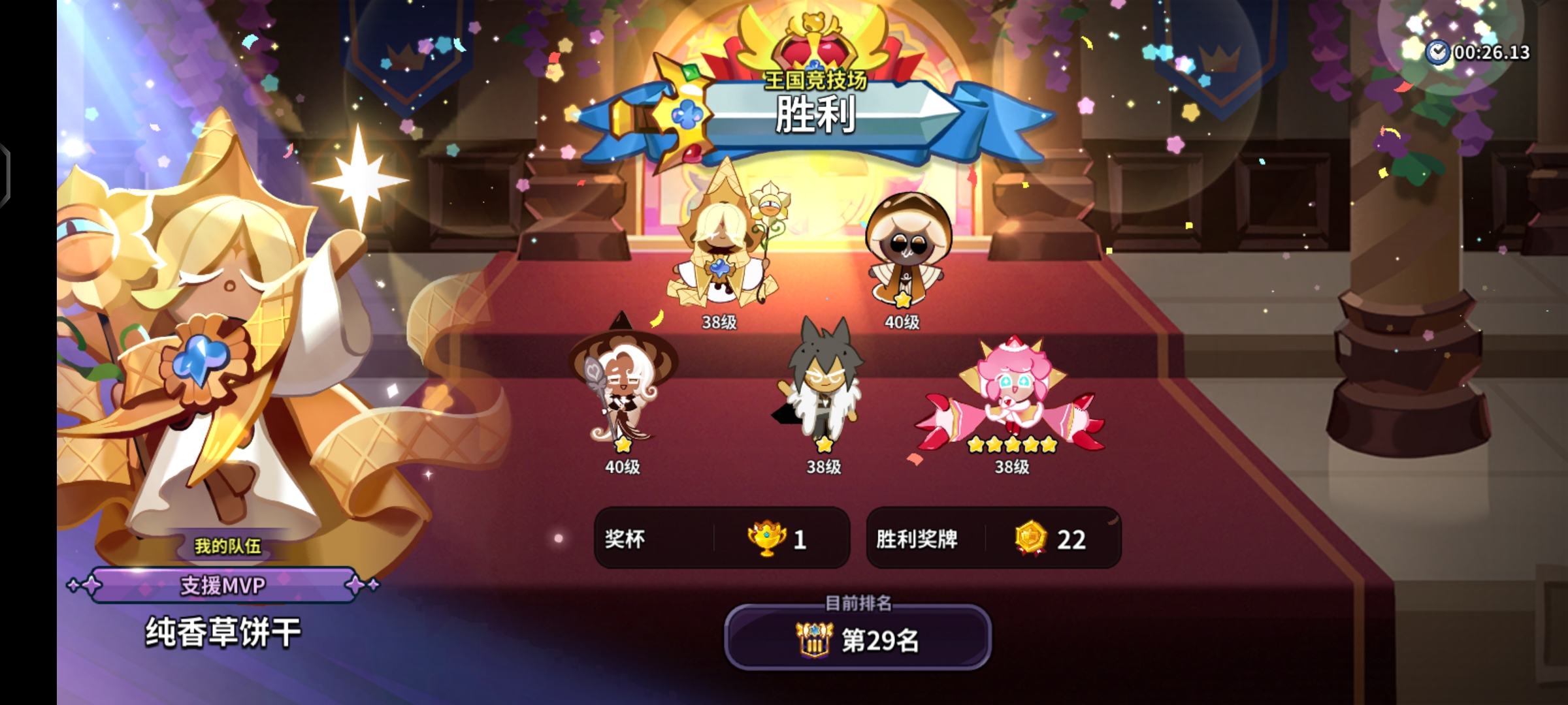2、饼干养成:由于英雄神殿的存在以及后期星星糖的稀缺,需要选择五位饼干进行主要培养,通过英雄神殿的栏位可以让其他饼干与这五位饼干里最低的等级相同(其他饼干也需要提升到三十级才能继承等级)。
