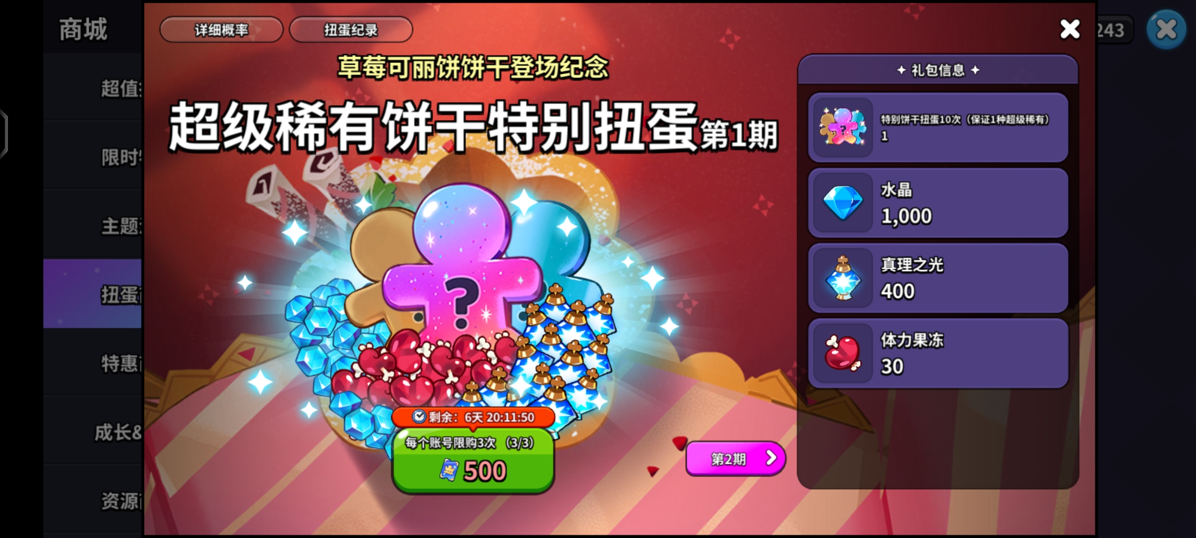 ⑤水晶规划:前期优先购买地标建筑物并且拉满生产建筑的额外栏位,然后再拿去抽草莓可丽饼池子,注意一定别抽普池。