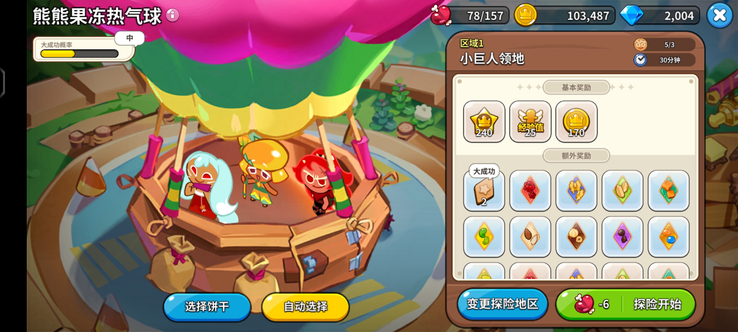 ③开服体力规划:第一天全部用来推图,遇到熊熊果冻热气球的任务就只探险区域1,困难模式除了任务强制关卡其他关卡也不要打。