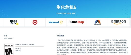 在该游戏的评级信息中,标注了Xbox Series平台,而原版《生化危机5》最初登陆PS3、Xbox 360和PC平台,后期才移植至Switch。此外,描述中提及游戏内购选项,这恰恰是现代卡普空重制版的典型特征,而非简单复刻移植。