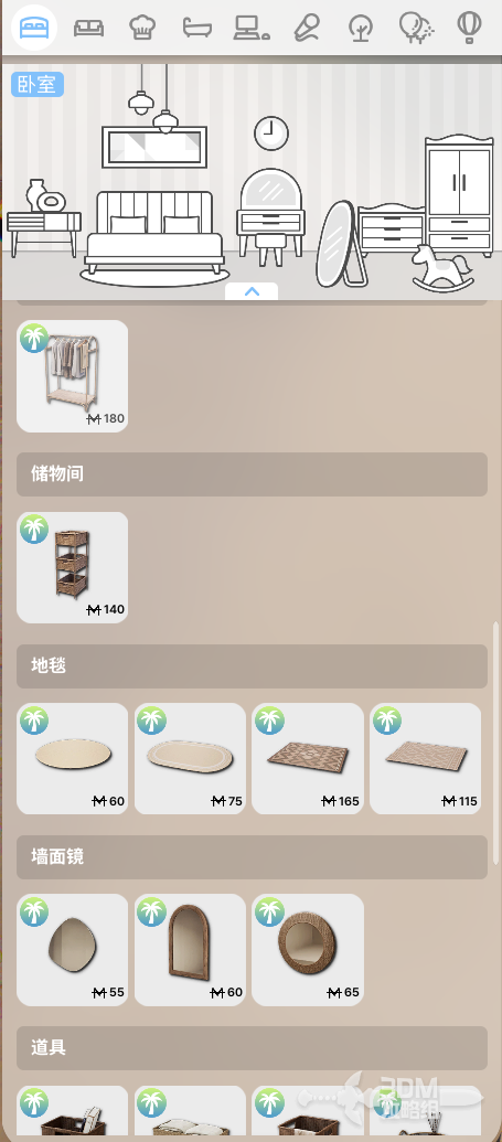 然后打开筛选,选择岛屿度假,就可以选择这个海岛假期DLC的新增家具。