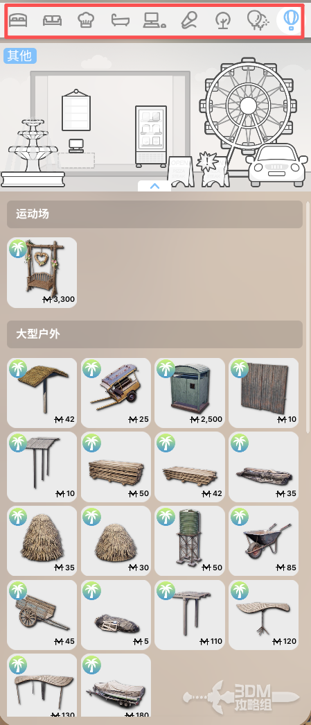 进入建造模式(I)后选择家具,并在筛选中勾选“岛屿度假”,即可查看海岛假期DLC新增物品。带有椰子树标识的家具均为新内容,切换分类可浏览不同类型。若需查看原有物品,只需取消勾选即可。