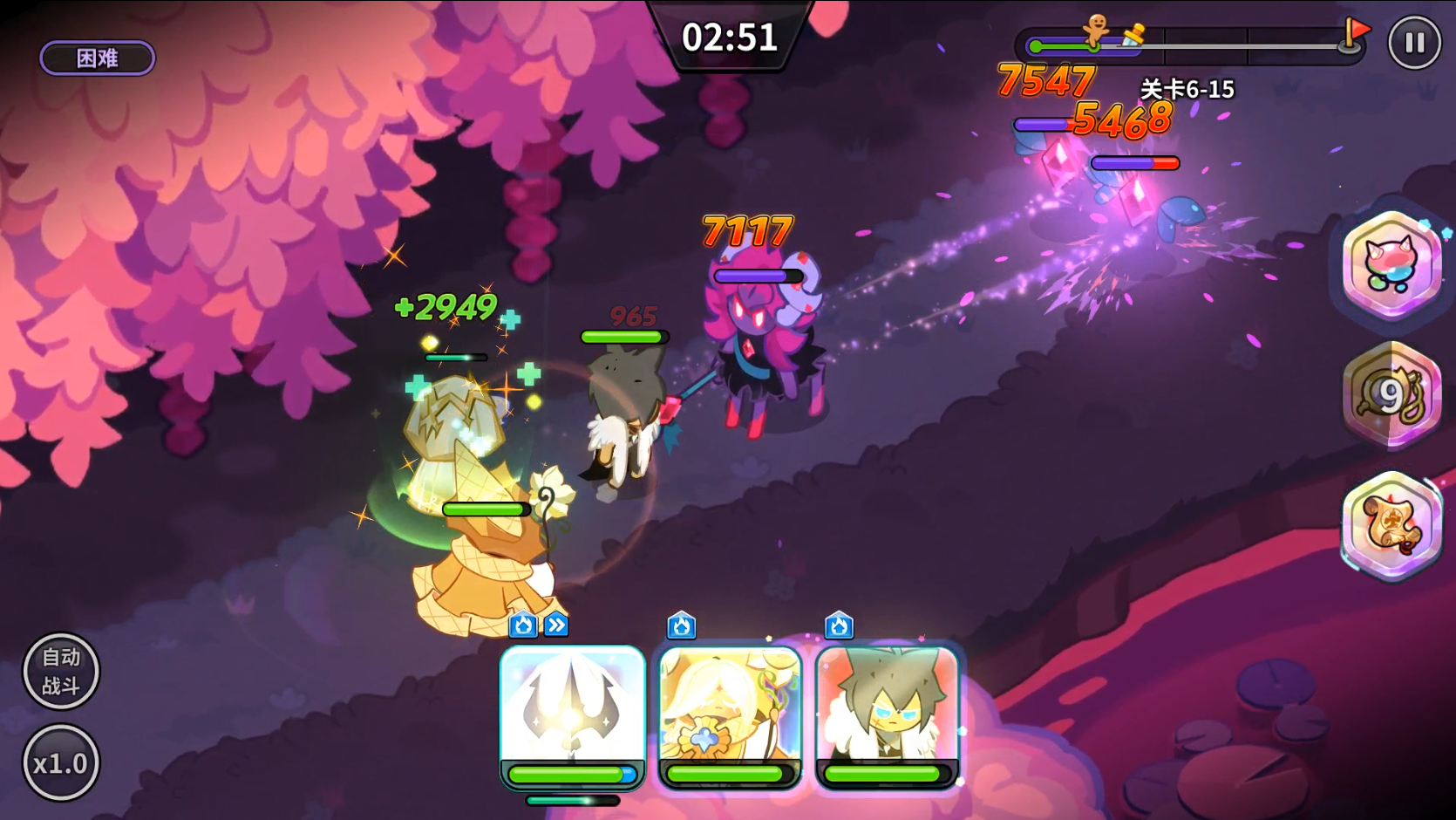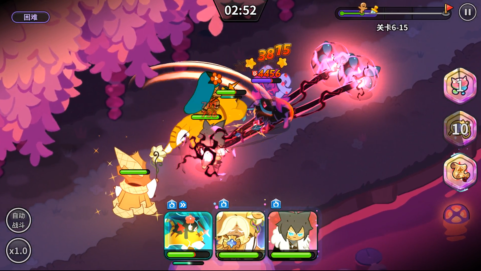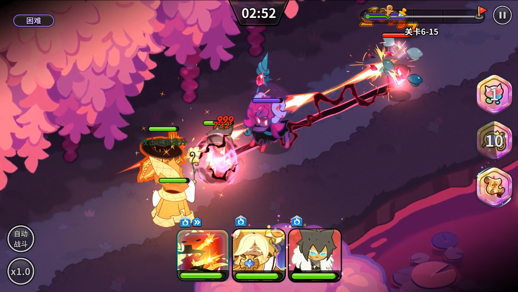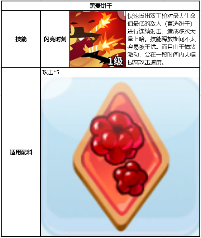 黑麦饼干的技能释放时能瞄准最大生命值最低的敌人进行多次大量伤害,这可以理解为对敌方阵容中最脆皮的饼干进行单点输出。很适合打PVP的技能,当然也适合挑战PVE的BOSS层。