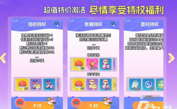 共有一个免费礼包和三个付费礼包,全部买完打折价为30元,玩家可通过切换更改礼包内容,更快培养出自己心仪的宝可梦,还可在超值活动里领取每日首充和连续充值奖励。