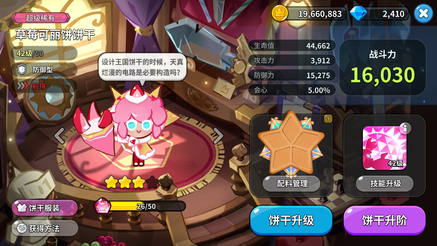 就当前版本的防御型饼干而言,推图刷本玛德莲饼干更好,而牛奶饼干是防御抗伤能力最强,嘲讽用好了在PVP中能浪费对手不少伤害。而草莓可丽饼饼干综合能力最强,前期再UP池抽他也不亏。