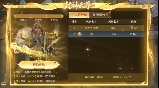倍率加持:挑战天尊在不同阶段会有不同的结算倍率,你的伤害量将直接转化为积分,并乘以倍率得到最终得分。阶段越高,倍率越诱人!