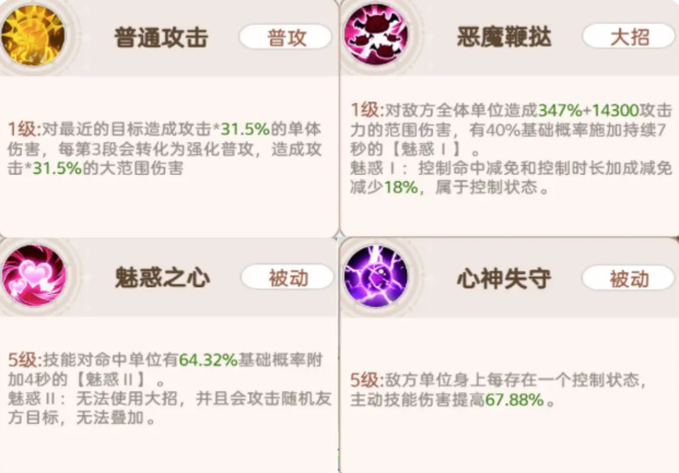 2、粉小妖有强力的魅惑技能,能够削减敌方的控制抗性,进化后的魅惑能强迫敌方单位互相攻击,并且在持续时间内无法释放技能。