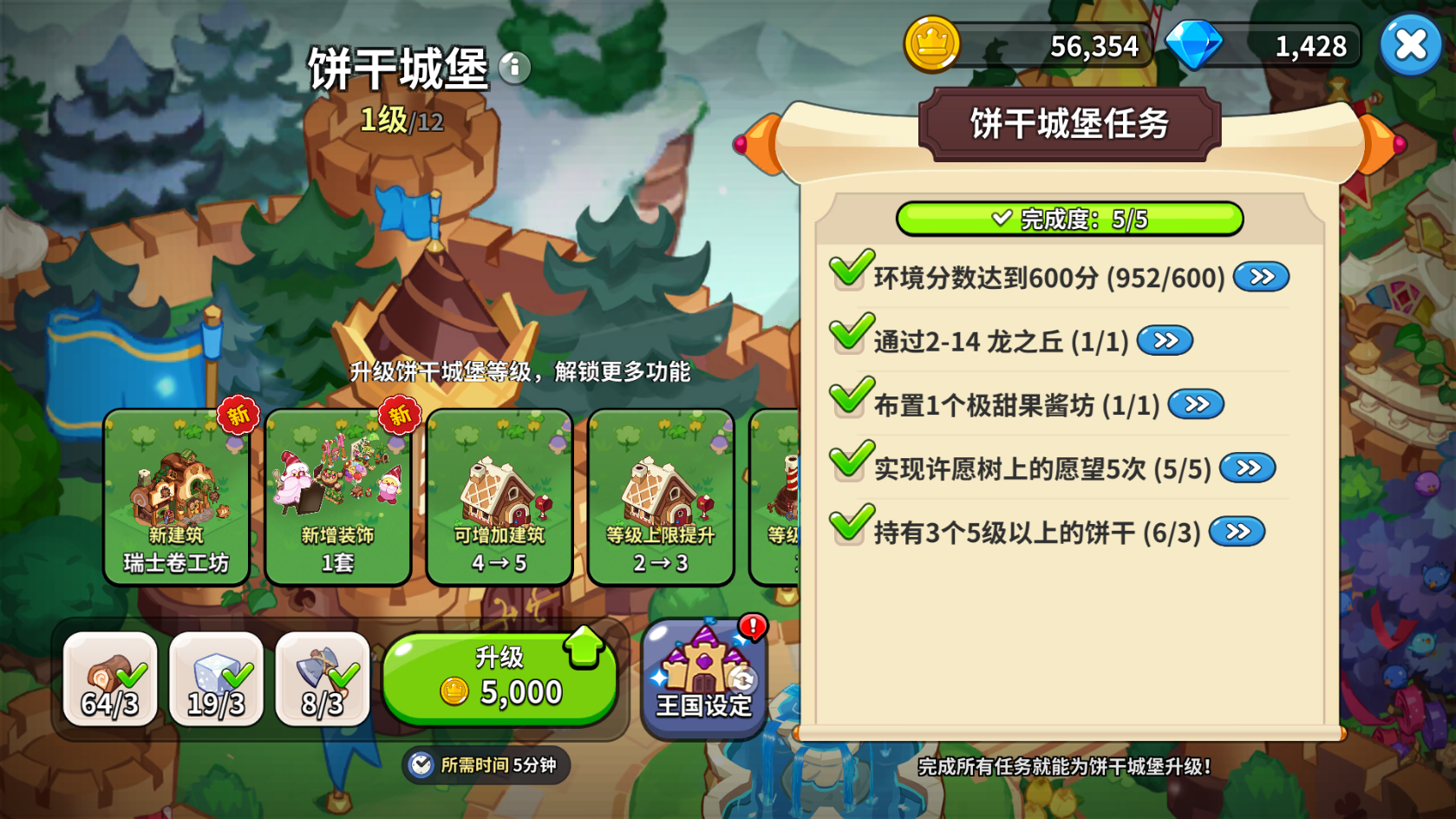 想要升级城堡,需要完成指定的任务以及达到指定的环境分数。