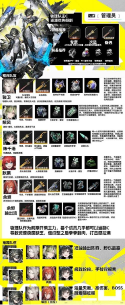 管理员:队伍核心与主控手,负责提供源石结晶”增伤、触发猛击”,并补充破防层数。