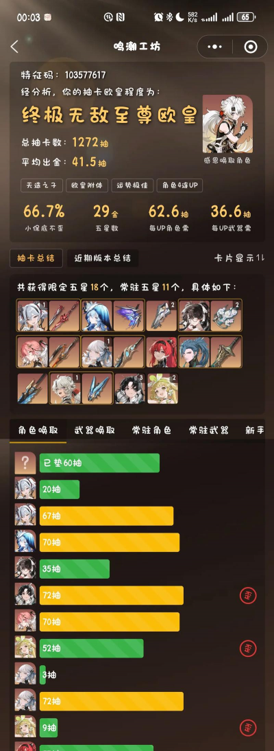 1、推荐抽取:6命+专武 (6+1)