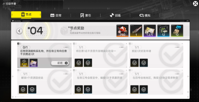 2、操作方式:点击菜单右上角打开【行动手册】,按阶段标签逐一完成目标;建议推进主线、解锁地图的同时同步完成,避免浪费时间。