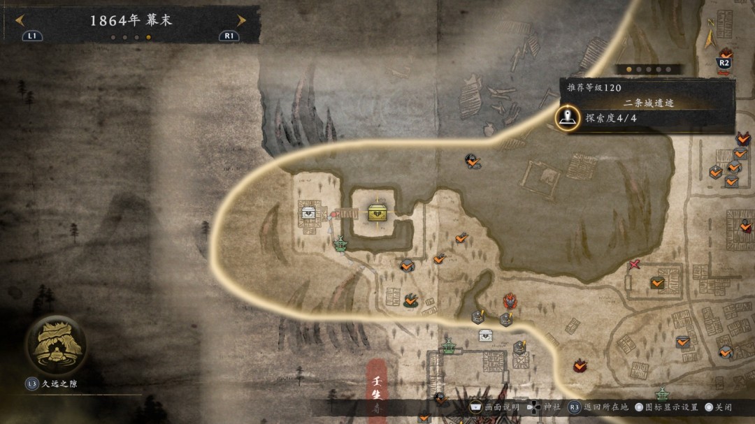 三个隐藏boss之一,位置在【幕末-二条城遗迹】,如下图