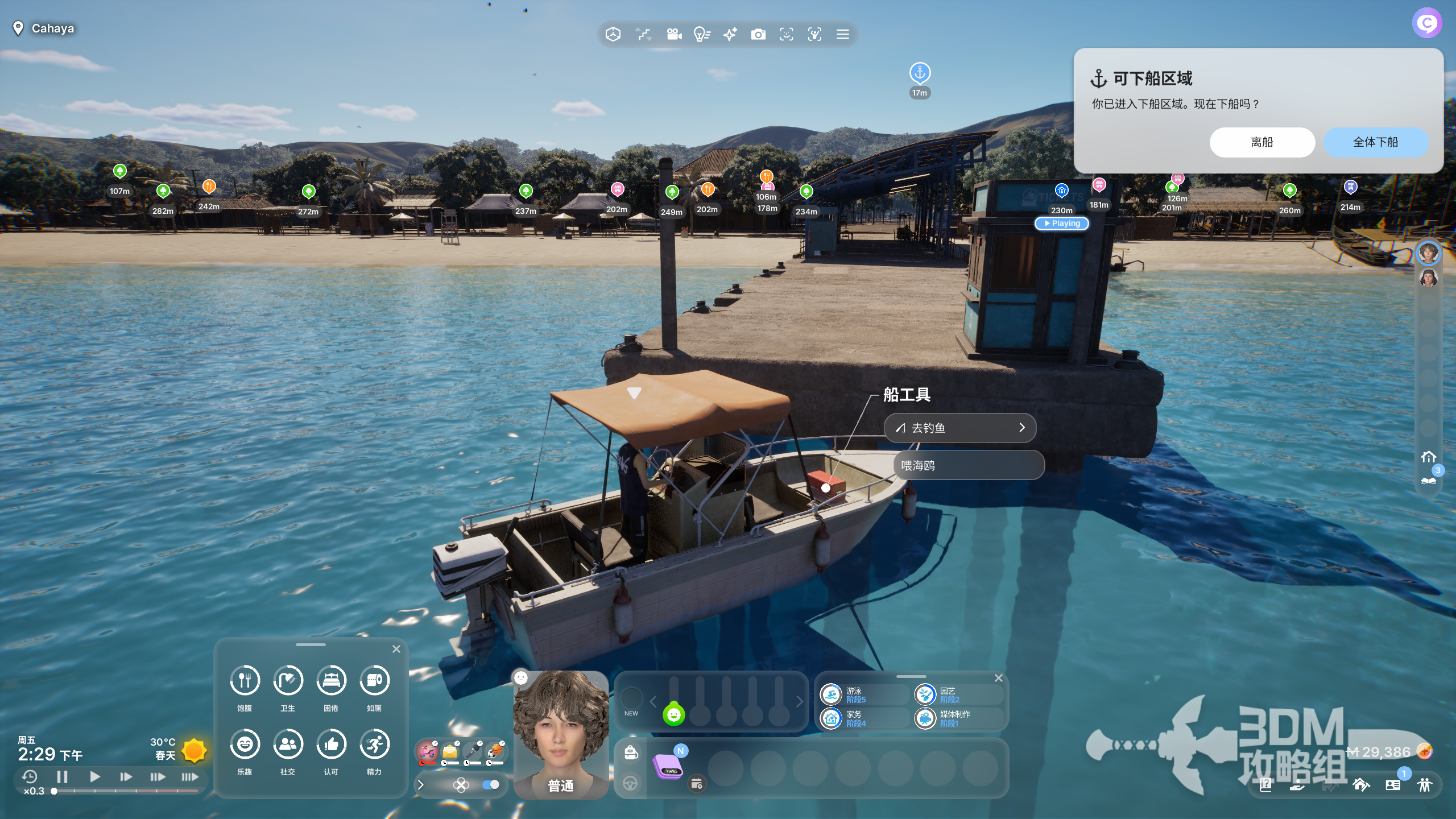 到非码头的地方,可以点击自己下船。
