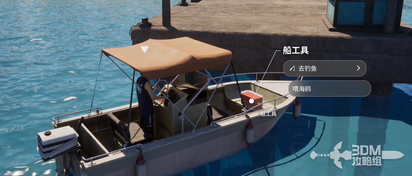 船上有工具箱,可以钓鱼。
