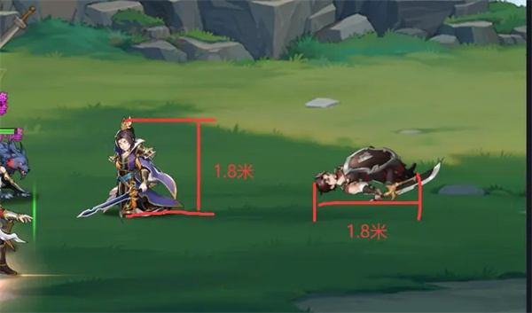其实也很简单,战场中武将“小人”的高度就是距离的尺子,“小人”高度定为1.8米,躺倒后占得距离也是1.8米,其他尺寸都按照这个计算。