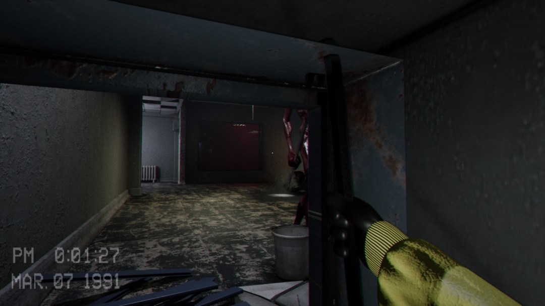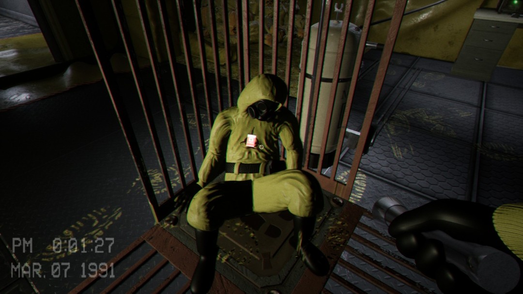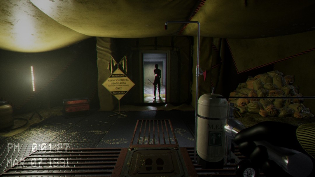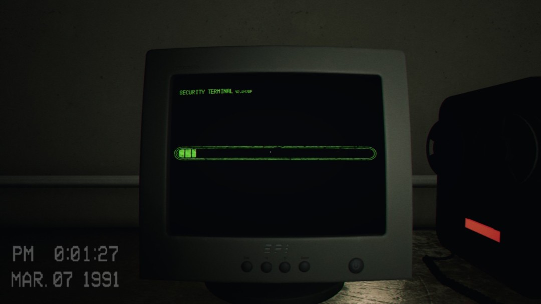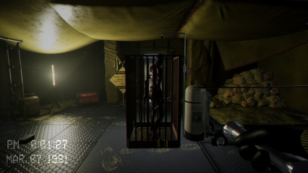 来到地下室后进入到这个房间,右边有一台机器,左边会播放一段影像,告诉你右边的机器怎么使用,这里必须等影像播放完毕之后门才会开启,可以在播放影像的这段时间将右边的罐子推过来。
