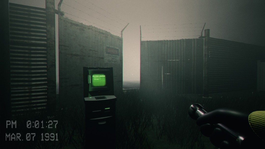 到达这个场景之后一出来正对面有一个房子,进去,找到电脑,并使用,等待进度条完成之后离开,在外面找到被铁丝网包围起来的地方。