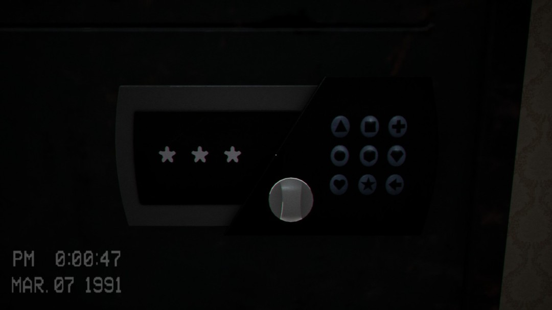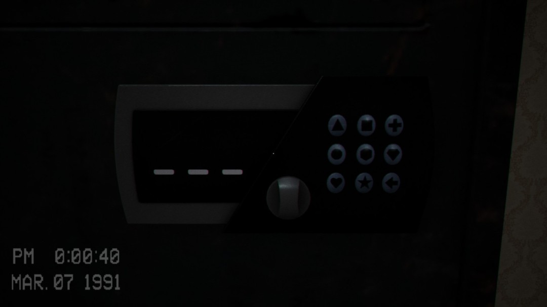 然后来到隔壁的房间,使用柜子输入刚刚的影子密码,(如我刚刚得到的影子图形为1:□;2:●;3:←,按照顺序输入即可。密码应该是固定的)然后按下旋钮即可打开柜子。