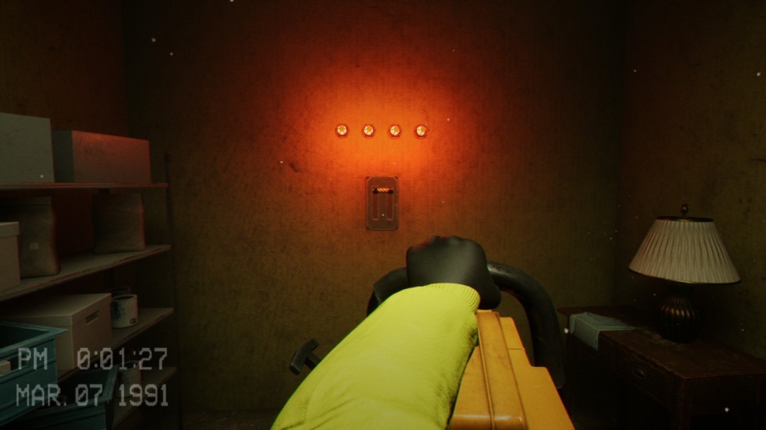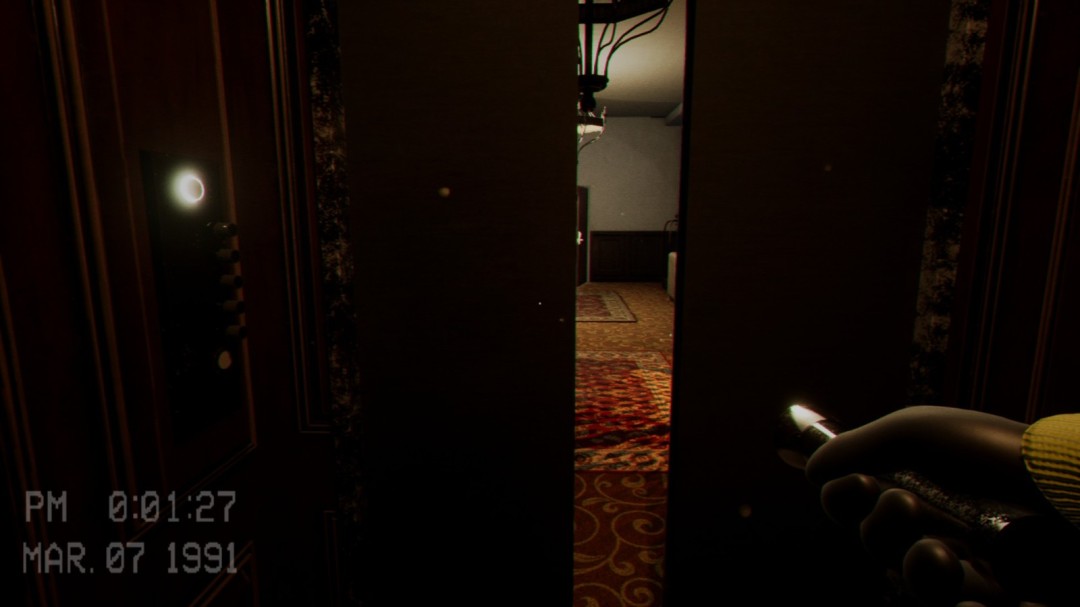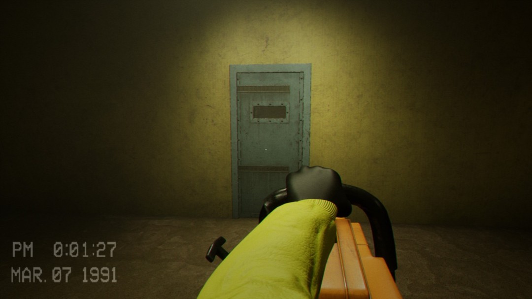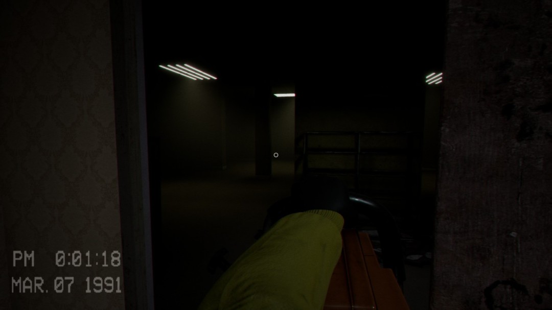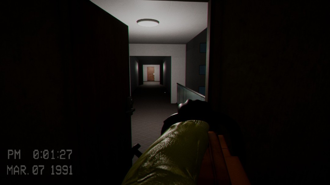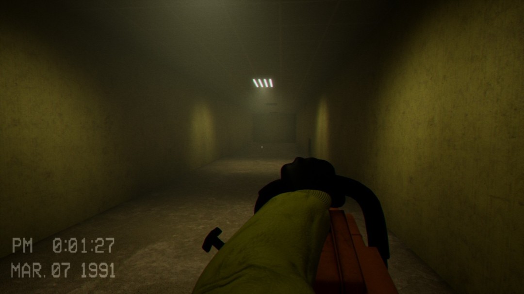 在这个区域内会看到这样被木棍锁住的门,左边的通风管道则是用来躲避怪物的地方。
