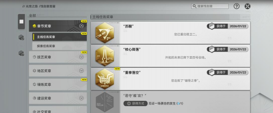 荣誉墙展示:蚀刻章可在光荣之路”界面自由排列,打造专属荣誉墙,支持按类型、难度、获取时间分类展示。