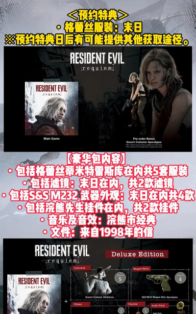综合来看,《生化危机9:安魂曲》在内容体量、叙事深度与技术完成度上均达到系列新高度。尽管定价处于主流3A大作区间,但双主角系统、浣熊市重构、视角自由切换等创新设计显著提升了单位价格的内容密度。玩家可根据自身设备平台、偏好玩法及对额外内容的需求,合理选择标准版或豪华版进行购入。