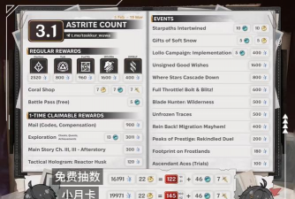 鸣潮3.1版本中有2位全新角色可以让你抽取,每个玩家都能通过奖励来抽取到自己喜欢的角色,一些小伙伴想要3.1版本能攒多少抽,今天小林将给玩家们带来关于鸣潮的3.1版本星声数量统计。