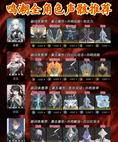 3、特点:完美契合爱弥斯双体系玩法(聚爆效应+偏谐),共鸣解放伤害加成极高,是版本毕业首选。