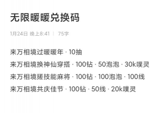 无限暖暖2.2前瞻直播在上周正式播出,官方给玩家们提供了许多关于新版本的各种福利和相关资讯,还有专属前瞻兑换码能兑换相应资源,很多小伙伴在询问2.2前瞻兑换码是什么,今天小林将给玩家们带来关于2.2前瞻兑换码合集。
