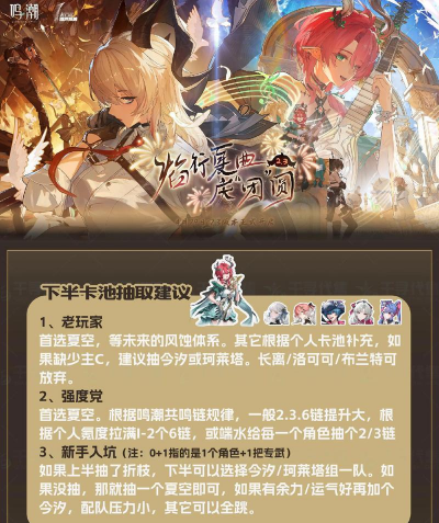 鸣潮3.1前瞻直播给玩家们带来了许多关于新版本的活动福利,其中还有最新卡池信息,一些小伙伴想要知道3.1下半卡池怎么抽,今天小林将给玩家们带来关于鸣潮的3.1下半卡池抽取建议,感兴趣的话就让我们一起来往下看看吧。
